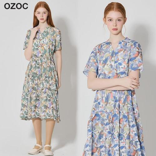 [오조크(OZOC)] 아트패턴 셔링 원피스 (택가격: 99000원)