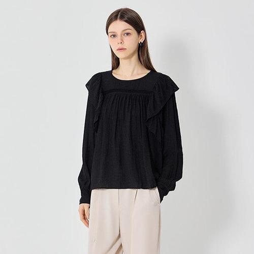 [오조크][오조크(OZOC)] 프릴 라운드넥 블라우스 (택가격 62000원)