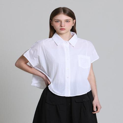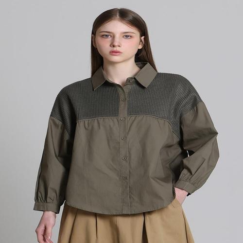 [오조크] 카라넥 소매 셔링 단추 크롭 셔츠 (K75-81606)