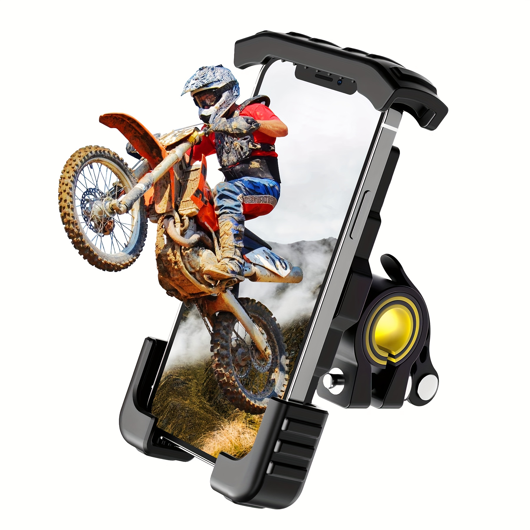 TEMU 폰 마운트 - 내구성 ABS 핸들바 액세서리, 레드 그립 및 조절 가능한 클램프 포함 | 안전한 스마트폰 홀더, 스테인리스 스틸 & 자전거 바 마운트 - 4.7~7인치 휴대폰 호환, 미끄럼 방지 실리콘 패드, 헤비듀티 메탈 튜브 디자인