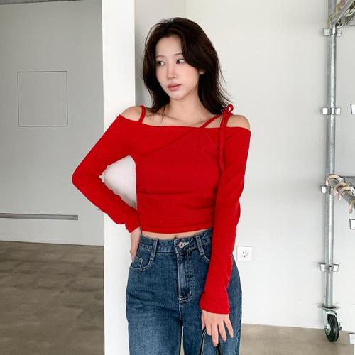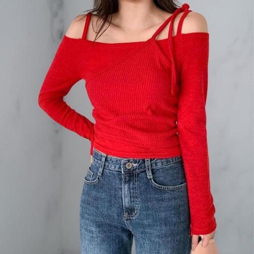 [에이치플러스몰]여성반팔탑 오프숄더니트 여름 원숄더 데이트룩