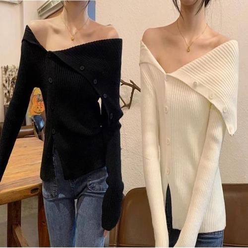 [엄지척]여자 니트 여리여리 골지 오프숄더 언발란스 버튼_19802758_667501