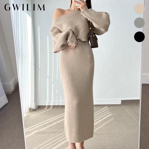 [귈림][귈림] 니트 오프숄더 + H롱스커트 (GBWSE014P)