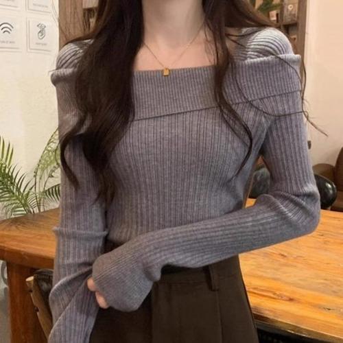 [옷자락]여성 단색 레이어드 스퀘어넥 오프숄더 니트