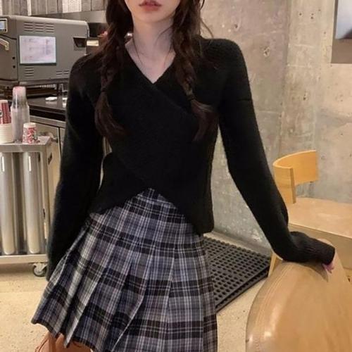 [JHQR0Q3V_4B]브이넥 니트원피스 오프숄더 미니 긴팔 치마