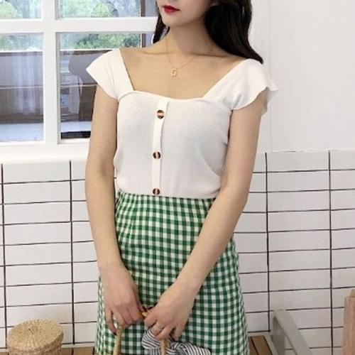 [엄지척]여자 민소매 여름 니트 스퀘어넥 오프숄더 블라우스_19678955_667501