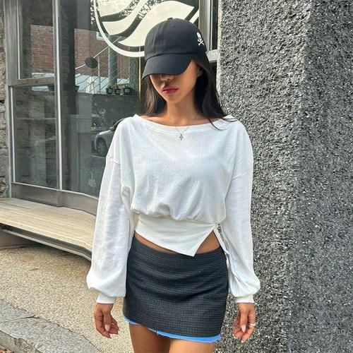[유야]입술넥 오프숄더 트임 맨투맨 티셔츠 -TS0941H- 빅사이즈 루즈핏 여성 가을