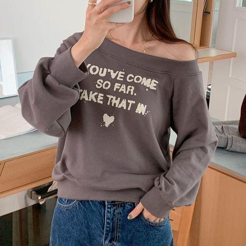 [유야]레터링 오프숄더 맨투맨 티셔츠 -TS0943H- 빅사이즈 루즈핏 여성 가을
