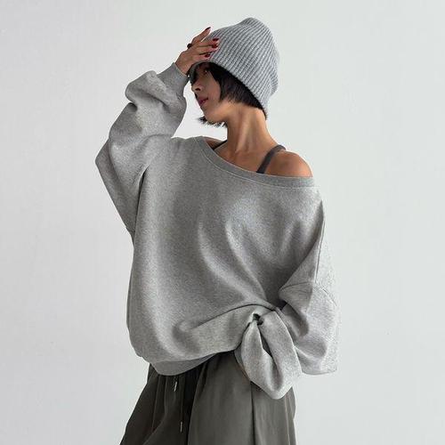 [유야]무지 오프숄더 맨투맨 티셔츠 -TS0944H- 빅사이즈 루즈핏 여성 가을