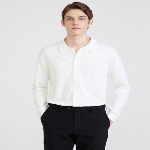 [BOTTO GIUSEPPE] 실크 혼방 오프화이트 솔리드 셔츠형 긴팔 가디건 (DMSW5AN04OW)