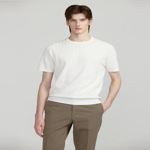 코튼 강연 오프화이트 헤링본조직 라운드 반팔 스웨터 (DMSW5BN02OW)