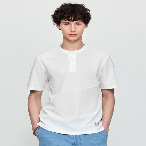 헤지스 남성 오프화이트 와플조직 헨리넥 반팔 티셔츠 (HZTS5B504OW)