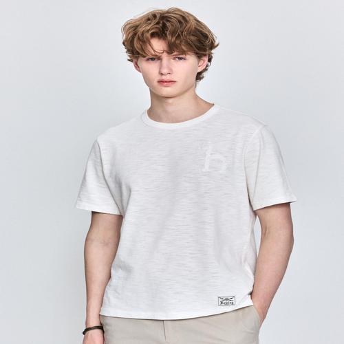헤지스 남성 [25주년][GARMENT DYE] 오프화이트 빅퍼피 반팔 크루넥 티셔츠 (HZTS5B003OW)