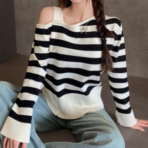 스트라이프 오프숄더 풀오버 - 블랙 (355951LYP5)