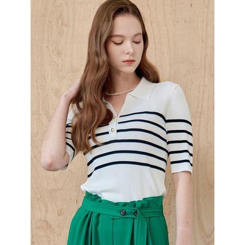 [마쟈]스트라이프 오픈 카라 리브 니트