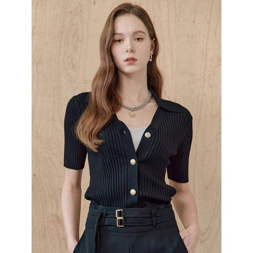 샵앤) 국산 여성 카라넥 반오픈 단추 데일리 반팔 니트 티셔츠 JLE-WKN-4427-아이보리