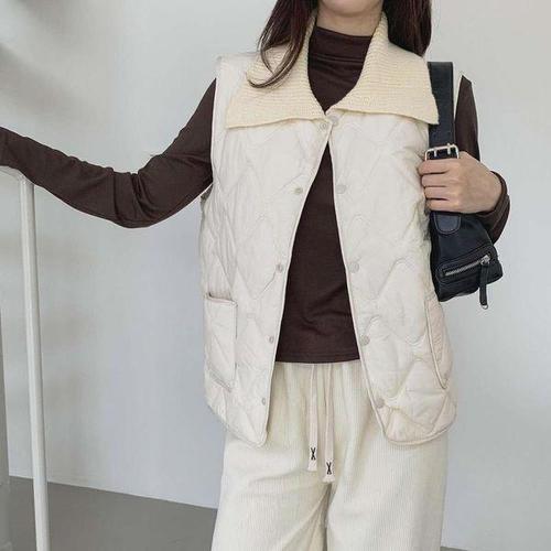 [신상오픈런]여성 니트 빅카라넥 퀄팅 웨이드 패딩 베스트