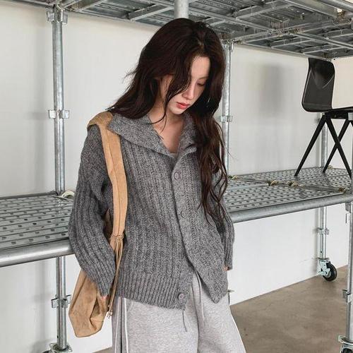 [신상오픈런]여자 울 알파카 카라넥 아방핏 니트 가디건