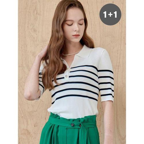 [마쟈]스트라이프 오픈 카라 리브 니트 1+1