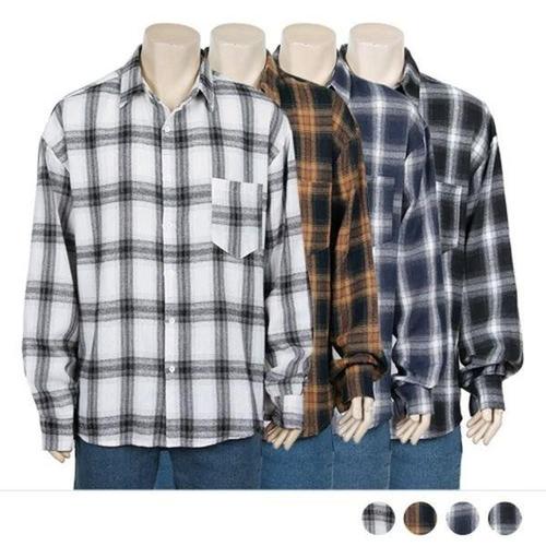 [셀러허브_여성트랜드패션]남자 셔츠 남성 스판 옥스포드 체크 긴팔 오버핏 캐주