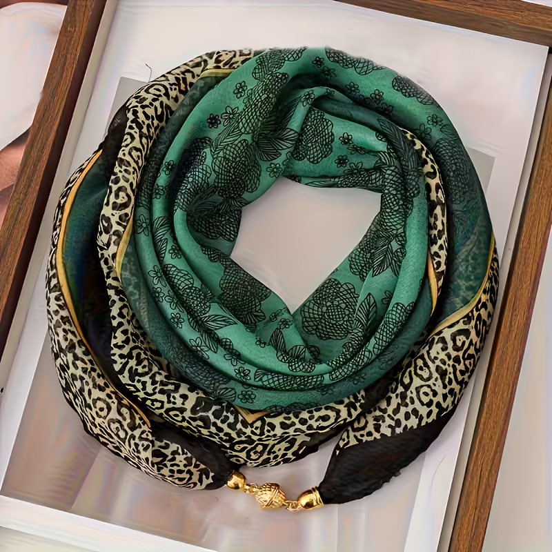 TEMU 우아한 프린트 스카프, 안전한 클립으로 고정. 세련된 여성용 넥 액세서리, 세 가지 컬러로 제공. 가볍고 통기성 좋음