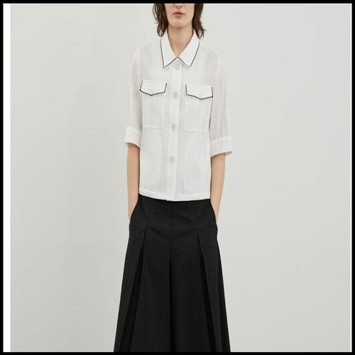 [올리비아로렌]HC04 캐주얼 배색 블라우스 VVCNL5M5386