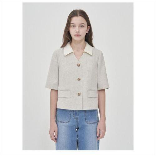 [올리비아로렌]배색카라 린넨 자켓_2VOCFUTM3371