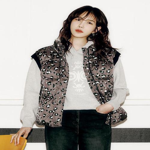 [올리비아로렌]호피프린트 다운 베스트_VVCKD4W9491