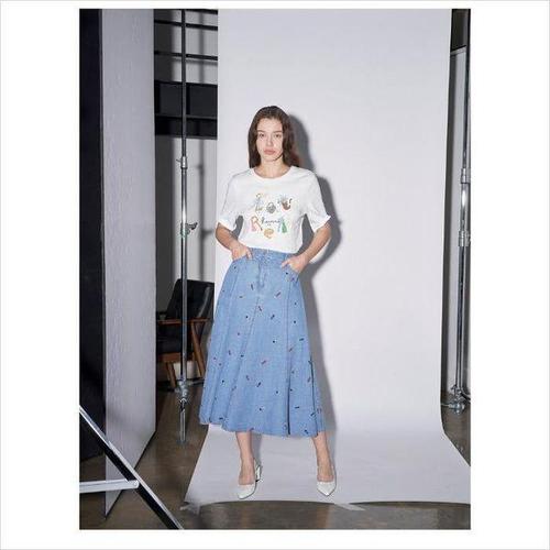 [올리비아로렌]HC04 자수 포인트 데님 스커트 VVBMS5M3461