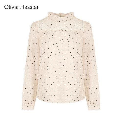 [올리비아하슬러]프릴 반넥 도트 포인티드 블라우스_OHDFBL208