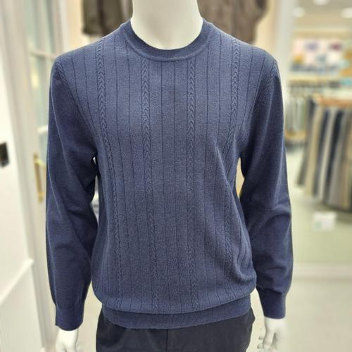[올젠]케이블 변형조직 라운드 니트 스웨터(Z0F4ER1301NV)_SH