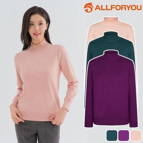 [올포유]니트 티셔츠 터틀넥 반넥 긴팔 여성 겨울