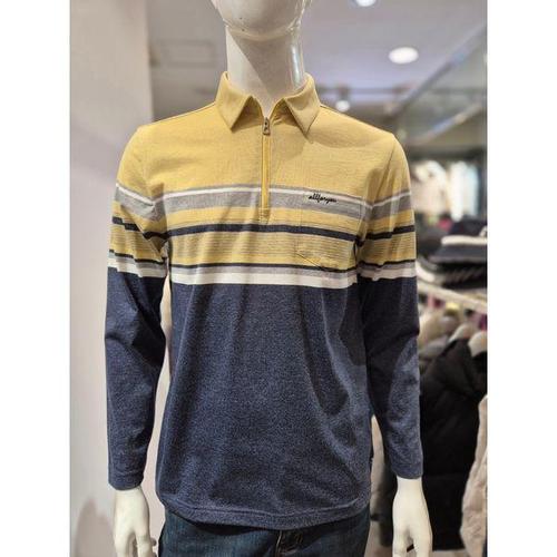 [올포유]남성-코튼폴리소재 선염 스트라이프 집업 카라 긴팔 티셔츠-GTYO2111