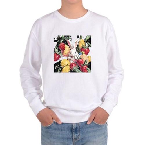[에이치플러스몰]기모맨투맨 전사이즈 물감 토끼 딸기 과일 래빗