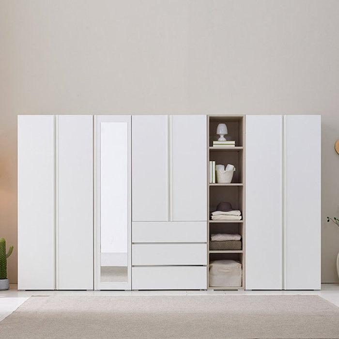 웰퍼니쳐 카린 1단 행거형 + 2단 행거형 거울도어 + 3단 서랍장 높은 옷장세트