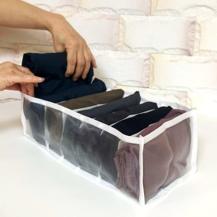 엄지척 옷정리트레이 서랍 칸막이 소형 7칸 메쉬 바지정리함