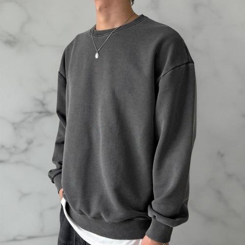[다잇템][다잇템] 남성 오버핏 라운드 티셔츠 면원단 FW 염색 맨투맨_23080538_588872
