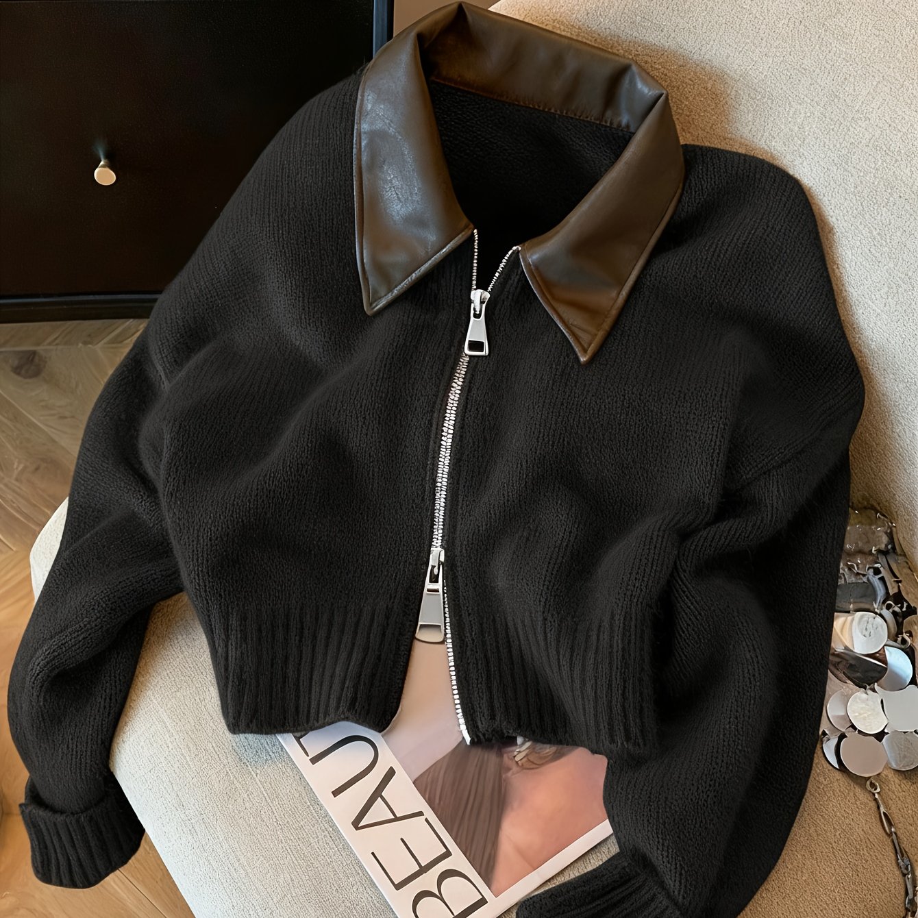 TEMU 여성용 아카데믹 스타일 가을/겨울 신상 자카드 더블 지퍼 스웨터 가디건, 루즈 레이지 턴칼라 아우터 탑, 디자인 가디건, 귀여운 스웨터, 여성용 스웨터 재킷, 코지 가디건, 겨울 의류, 가을 패션, 우아한 니트웨어, 세탁기 사용 가능, 원단, 긴팔 탑, 지퍼업 스웨터, 주말 아웃핏, 캐주얼 웨어