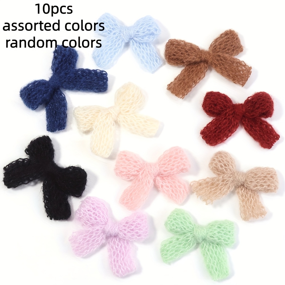 TEMU 10개입 가을 겨울 니트 보우 타이 세트 - 핸드메이드 헤어 클립 헤어밴드 헤어 액세서리 제작 생일 기념일 선물 상자 장식 카드 소형 리본, 주얼리 제작 디스플레이 & 포장 용품