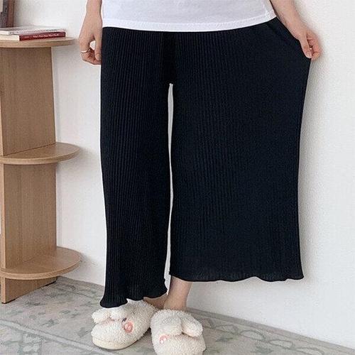 [비비드글램]뱀부 플리츠 와이드 팬츠 리본 밴딩 바지 찰랑한 홈웨어