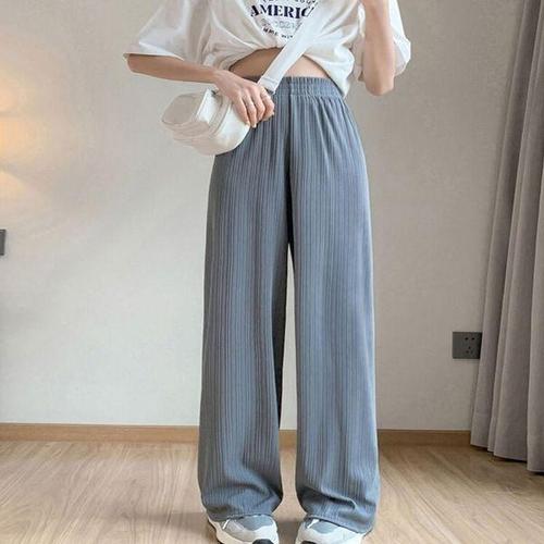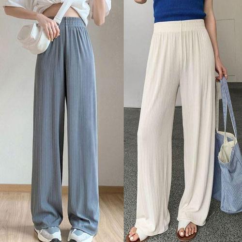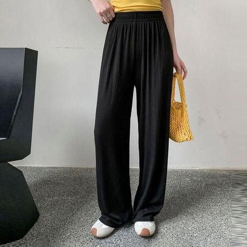 [에이치플러스몰]여성 여름 가벼운 여름 밴딩 플리츠 세로골지 데일리룩 홈웨어 마실룩 와이드 바지