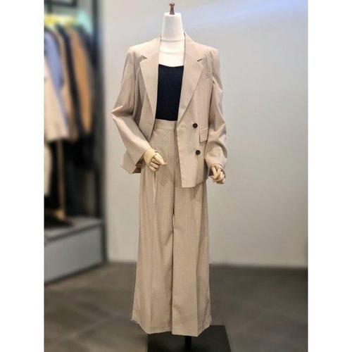 세련된 투피스 정장 반팔 여성 와이드팬츠 세트 자켓 정장