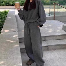 여성 루즈핏 후드티 밴딩 와이드 팬츠 캐주얼 트레이닝복 세트 상하 투피스 슬림소녀