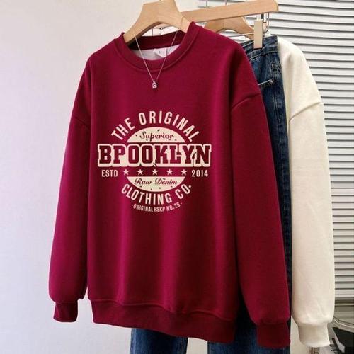 [에이치플러스몰]여성 맨투맨 라운드 넥 봄 가을 레터링 티셔츠 와인