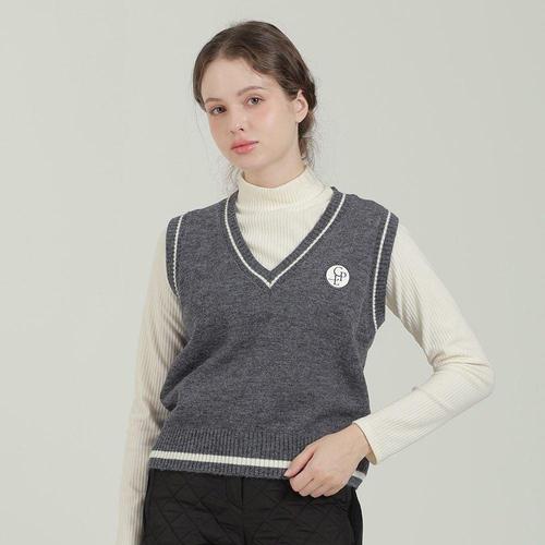 골피아 HF-TT1304 헤일리골프 여성 오버핏 와펜 브이넥 니트 베스트 조끼