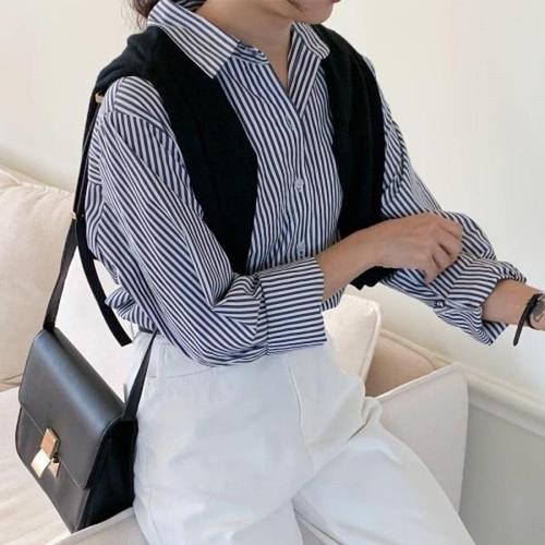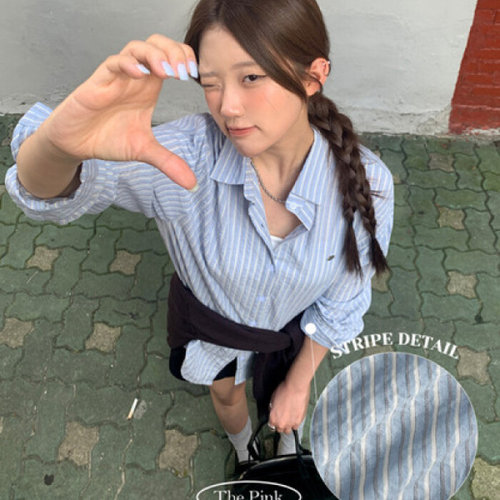 더핑크 / 모안 오버핏 와펜 스트라이프 셔츠