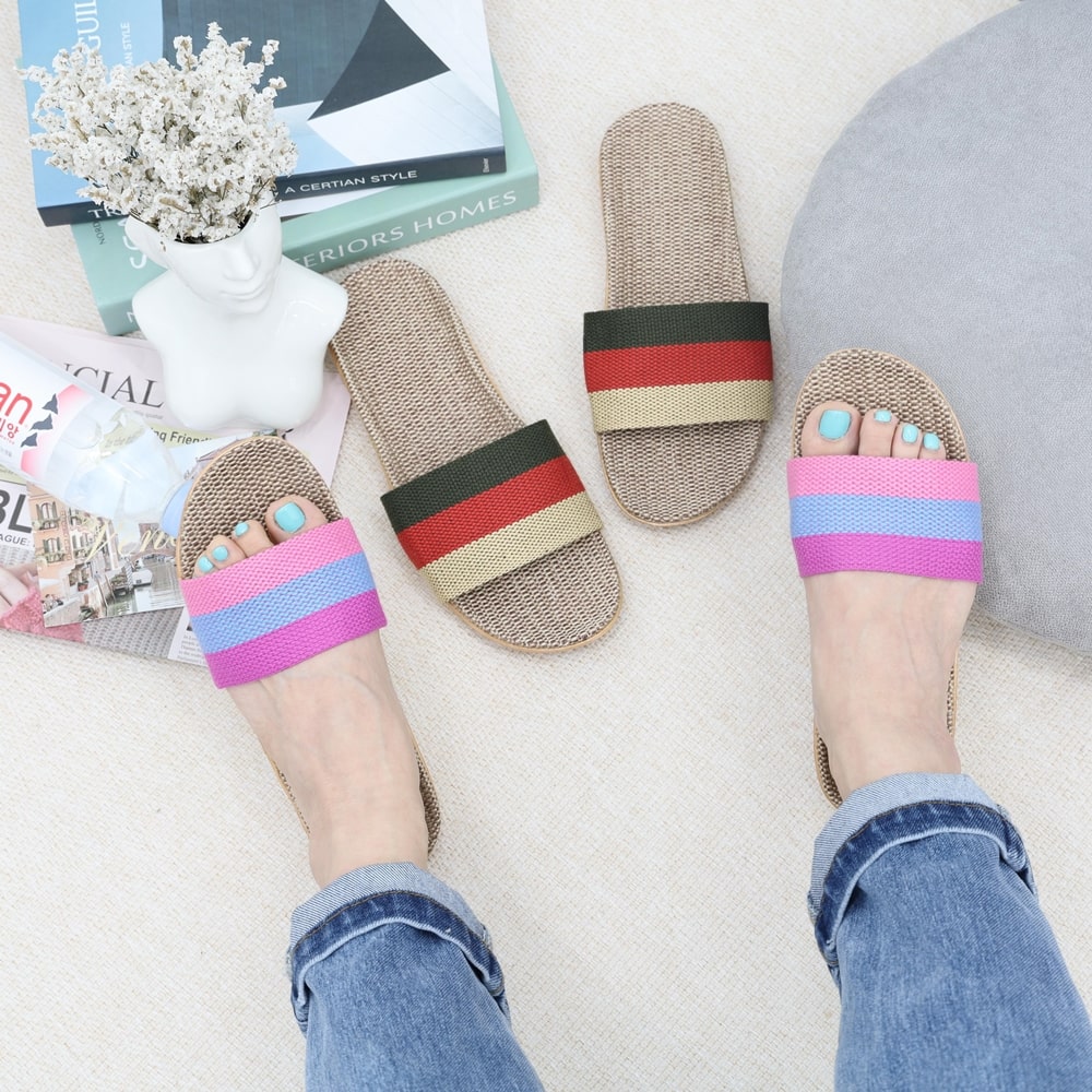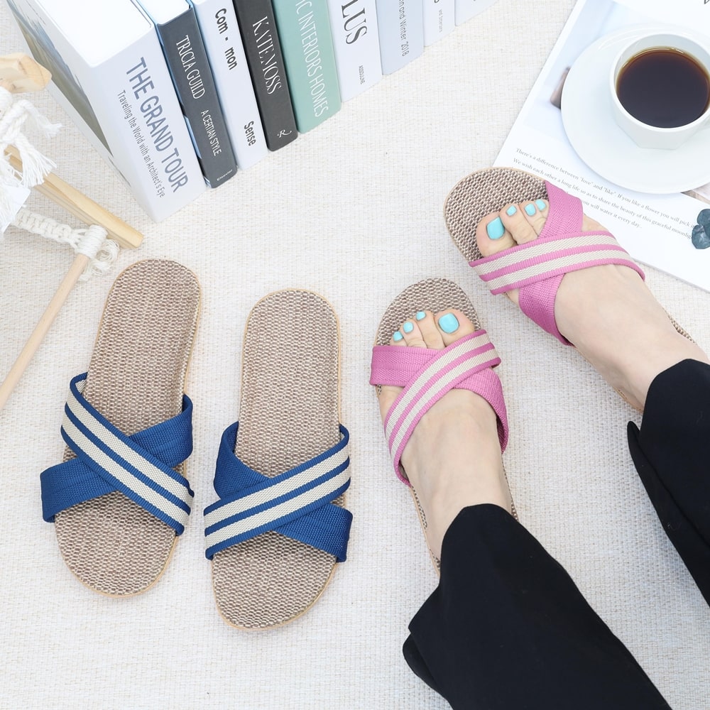 발편한 쿠션 층간소음방지 여름 왕골 린넨 거실화 실내화 사무실 슬리퍼 여행용 샌들 커플 마