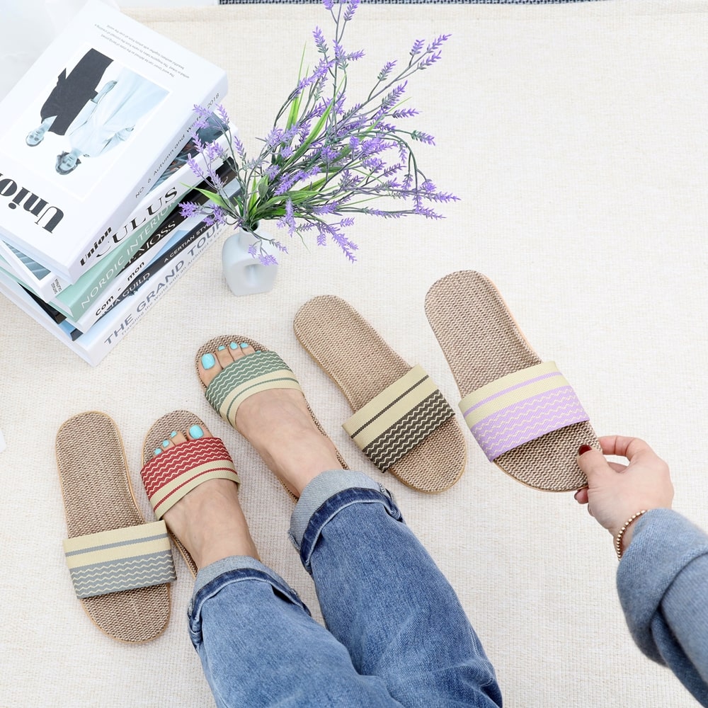 발편한 쿠션 층간소음방지 여름 왕골 린넨 거실화 실내화 사무실 슬리퍼 여행용 거실 가족 홈