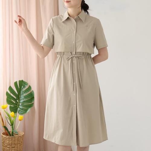 [웬디즈갤러리]요크 트렌치 반팔 원피스 /편한 허리 스트링 여름 외출룩 VOP103