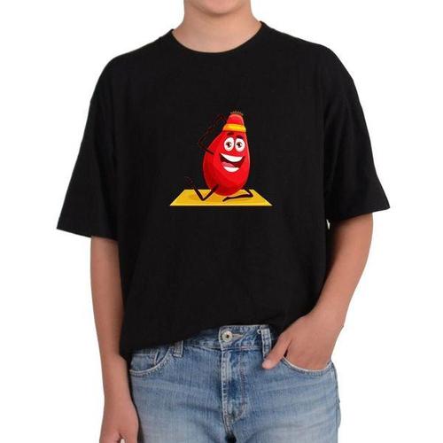 [에이치플러스몰]길단 반팔 USA핏 실내운동 요가 에어로빅 헬스 사과 일러스트그림 다양한색상 전사이즈